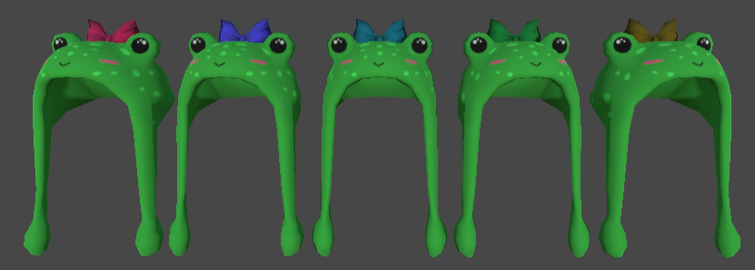 3D Frog hat with rigged bones in eyes, bow and arms.